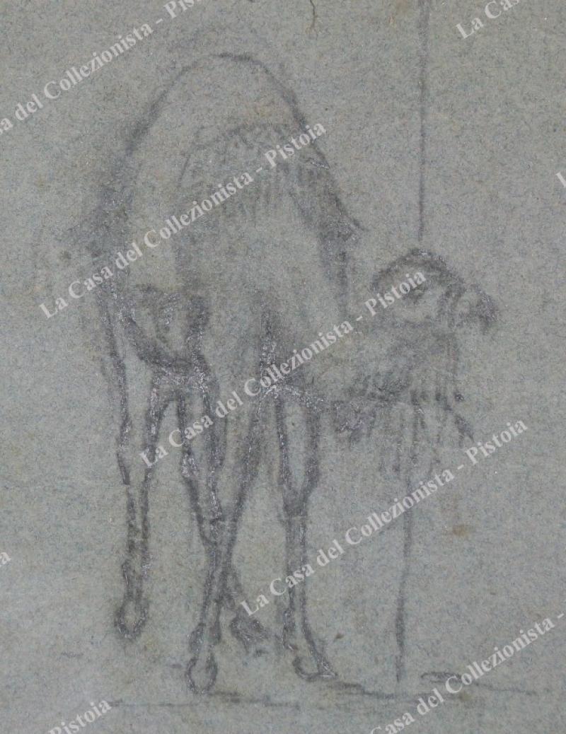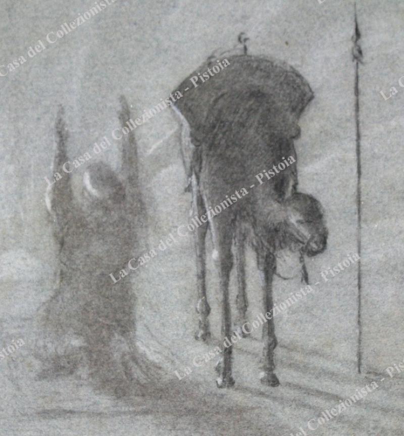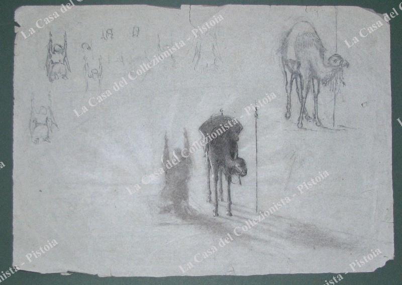 DISEGNO A LAPIS fine '800. Mostra musulmano in preghiera con a fianco il proprio cammello. Foglio di cm 34x24. Difetti. (Rif.E2323)