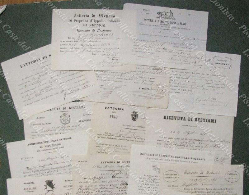 FATTORIE TOSCANE (dintorni Prato e Firenze). Raccolota di 21 ricevute degli anni '60 dell'800