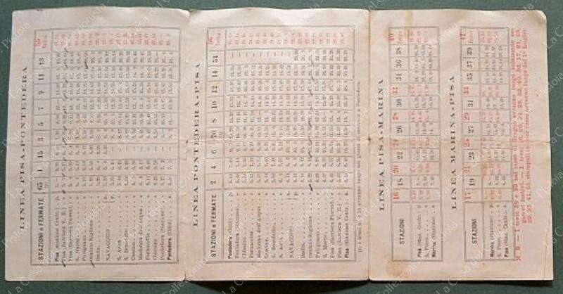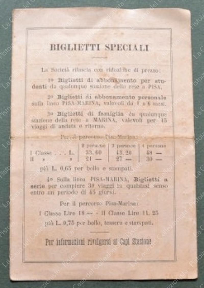 FERROVIE ECONOMICHE E TRAMVIE A VAPORE della provincia di Pisa. Orario del Giugno 1897. Pieghevole di cm 9x13 (aperto cm 13x26. Piccole usure. (Rif.F6827)