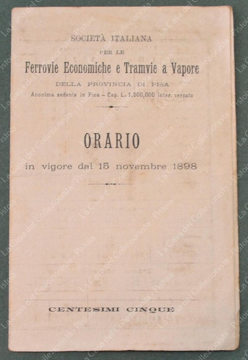 FERROVIE ECONOMICHE E TRAMVIE A VAPORE DELLA PROVINCIA DI PISA. ORARIO...1898