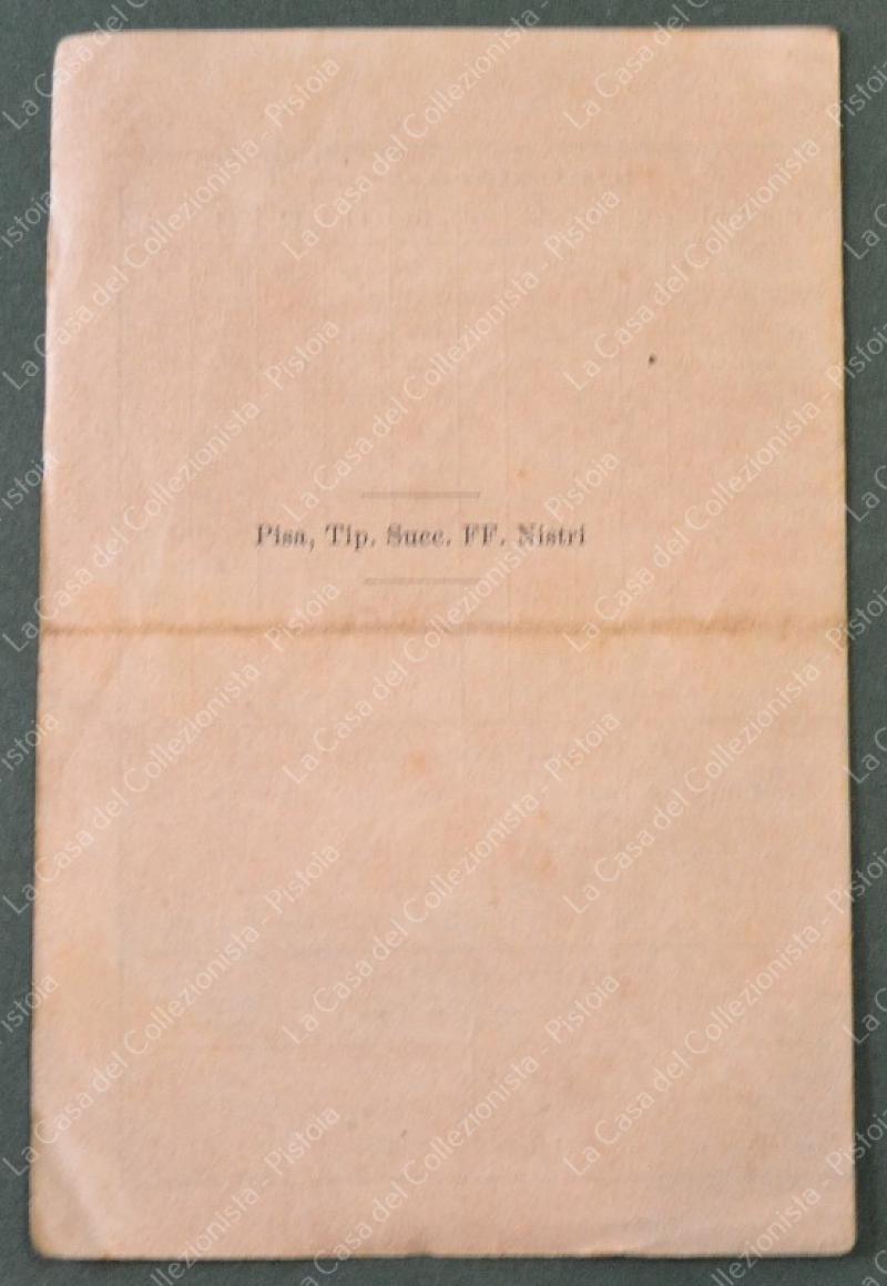FERROVIE ECONOMICHE E TRAMVIE A VAPORE DELLA PROVINCIA DI PISA. ORARIO in vigore dal 15 novembre 1898. 4 pagine di cm 9x14. Raro. (Rif.F6848)