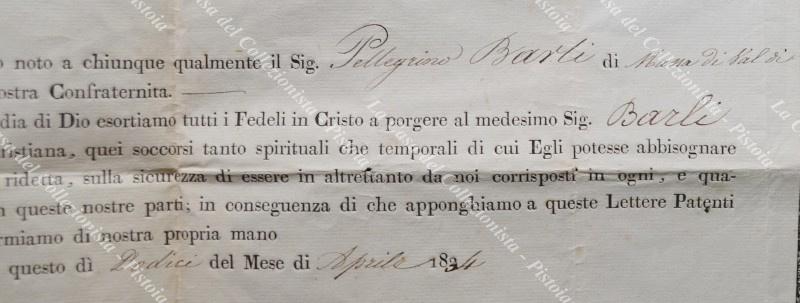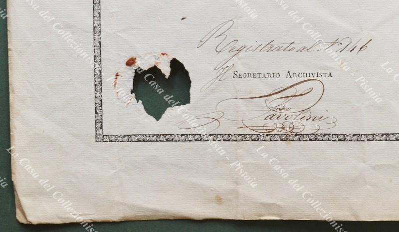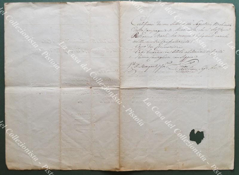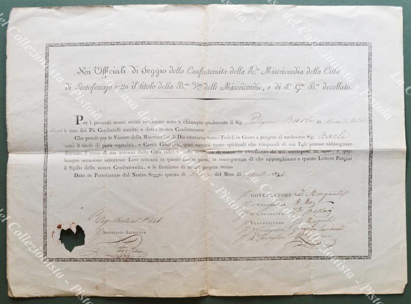 ISOLA D'ELBA. Confraternita della Misericordia di Portoferraio. Lettera patente del 12 aprile 1834. Documento di cm 67x34. Il sigillo è stato asportato. (Rif.F4067)