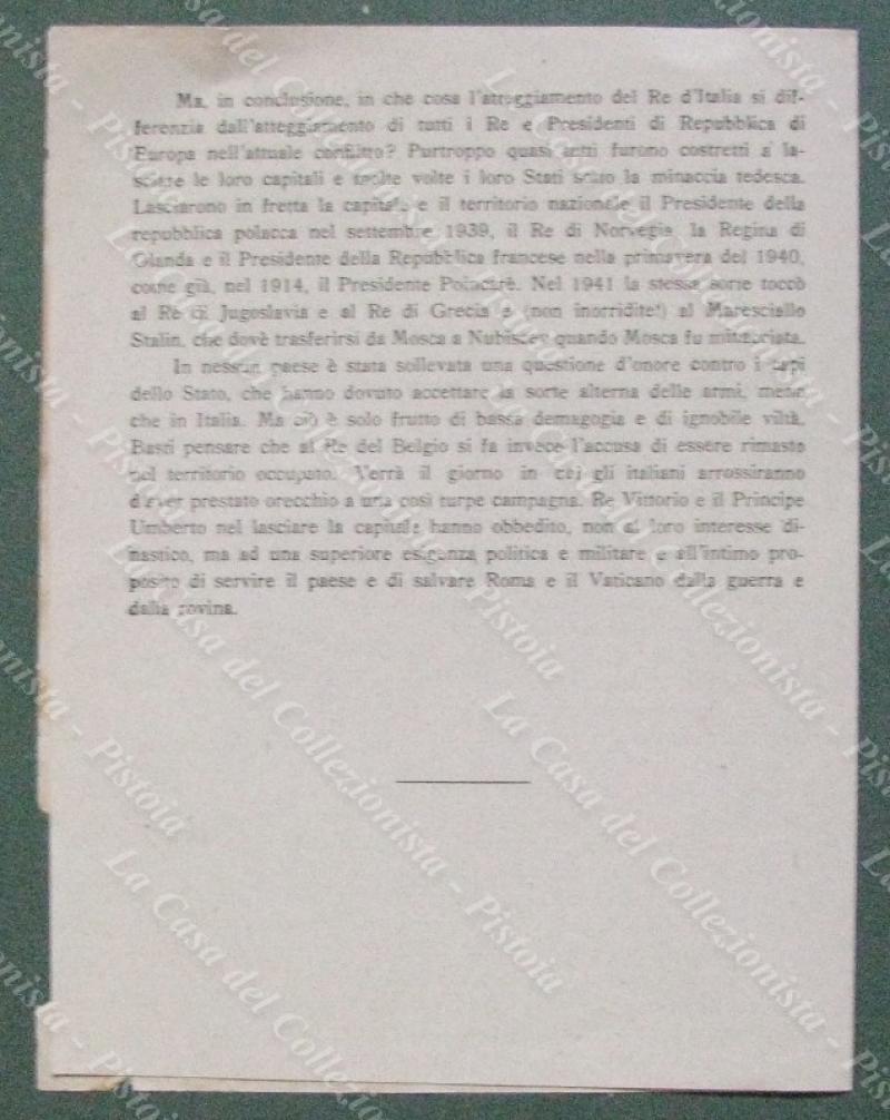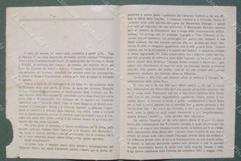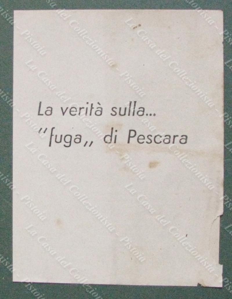 LA VERITA' SULLA..."FUGA" DI PESCARA. Volantino di propaganda dell'immediato dopo guerra. Formato cm 13x18, 4 pagine, piccola mancanza. (Rif.E5381)
