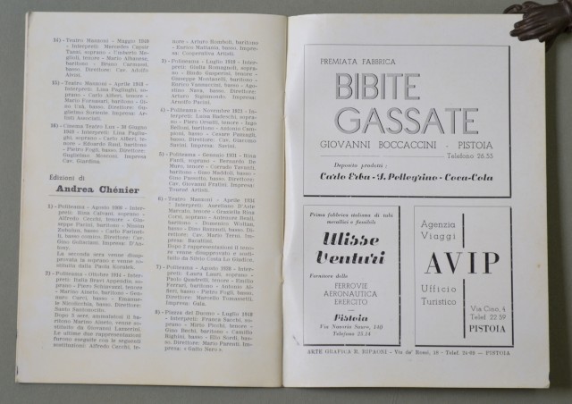 LIRICA, PISTOIA. Città di Pistoia, 9° Stagione Lirica, anno 1956. Lucia di Lammermoor e Andrea Chènier. Numero Unico illustrato.