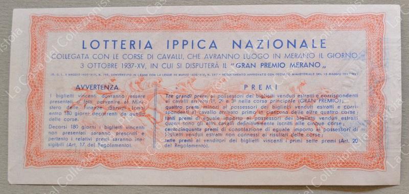 LOTTERIA DI MERANO 1937. Biglietto da lire 12