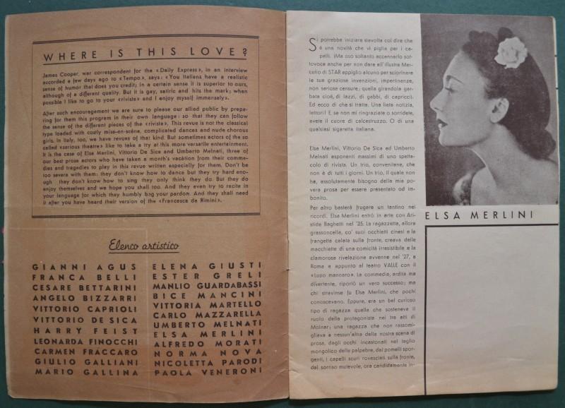 RIVISTA, inizio anni '50. MA DOV'E' QUESTO AMORE con Elsa Merlini, Vittorio De Sica, Umberto Melnati, G. Agus. Depliant di 12 pagine illustrate. (Rif.F5234)