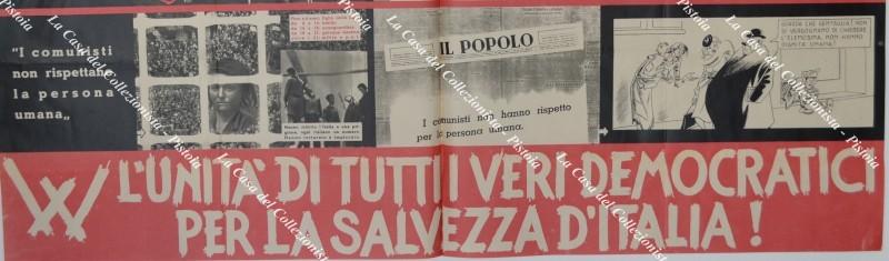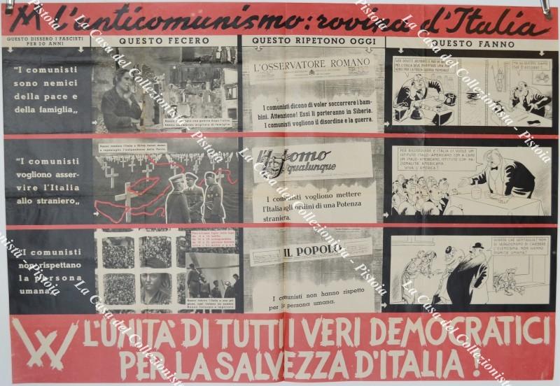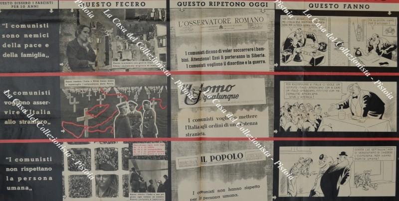 MANIFESTO di propaganda comunista con immagini e vignette. Cm 96x66, circa 1953. Piccoli restauri lungo le piegature e ingiallimenti a retro. (Rif.F6204-76)