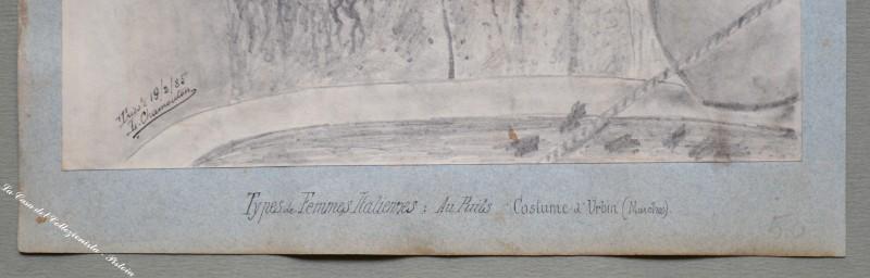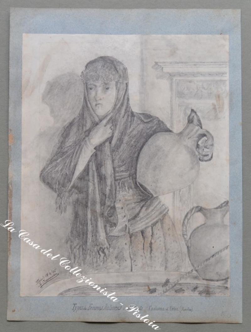 MARCHE – URBINO, un disegno originale. “Types De Femmes italiennes: Au puils. Costumes d’Urbin (Marches)”. Disegno a matita firmato...