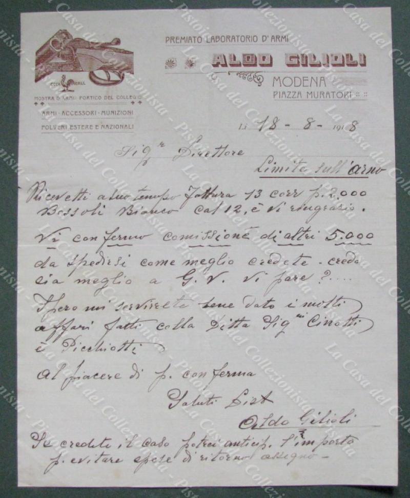 MODENA. Armi Gilioli. Vecchia fattura del 1918