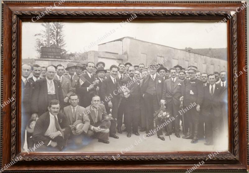 MORTARA, Pavia. Fotografia d'epoca (circa 1930) raffig. in via Nazario Sauro folto gruppo di persone. Alle loro spalle un cartello: Federazione Provinciale Pavese Confederazione Fascista di Mortara. Cm 49x32, in vecchia cornice dell’epoca (alcuni difetti a quest'ultima). (Rif.D6907-35/70)
