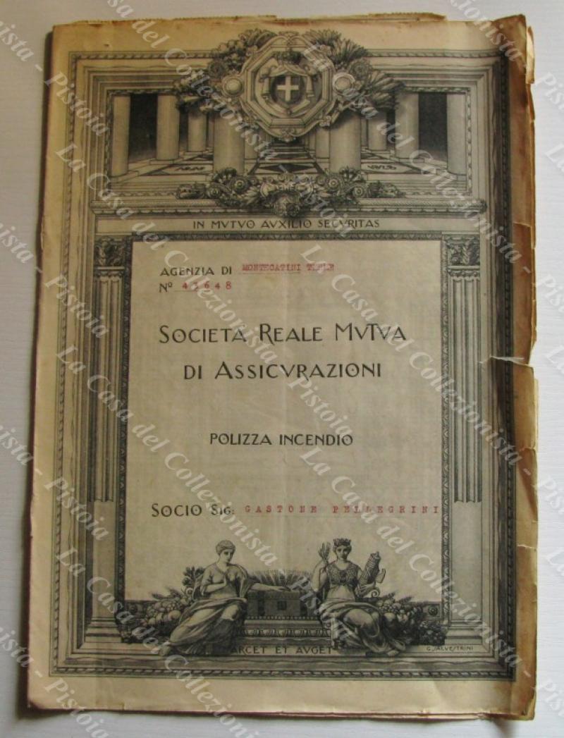 POLIZZA INCENDIO. REALE MUTUA ASSICURAZIONI. Anno 1929