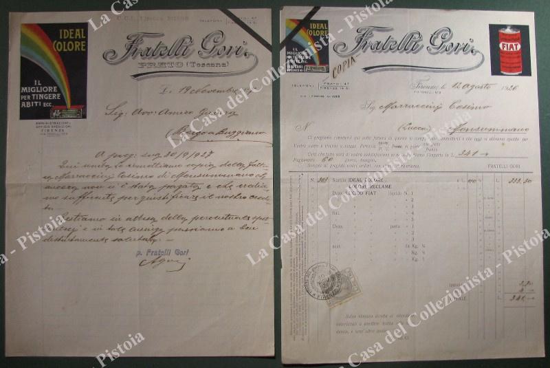 PRATO. 2 vecchie fatture 1926/27 IDEAL COLORE f.lli Gori