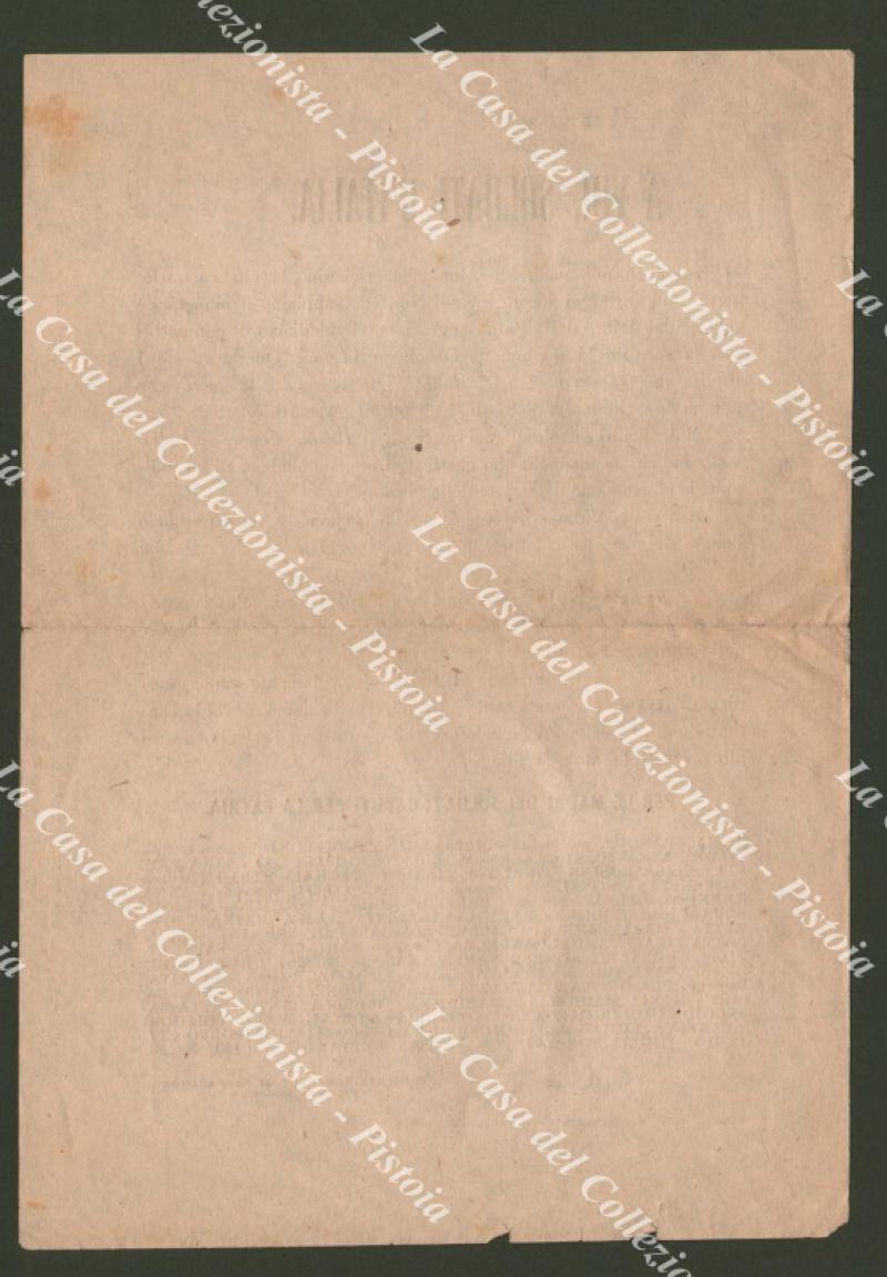 PRIMA GUERRA. A VOI SOLDADI D'ITALIA. Volantino di propaganda patriottica. Foglio di cm 17x25, circa anno 1917. Lievi imperfezioni. (Rif.F1337)