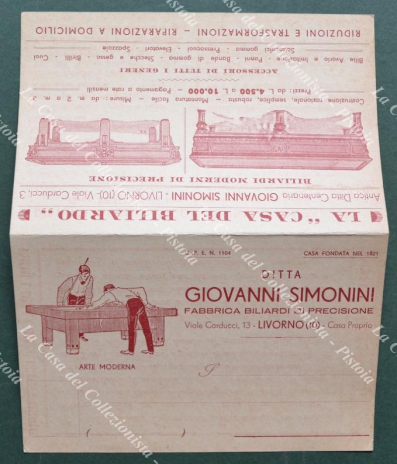 Pubblicità. BILIARDO. Fabbrica Giovanni Simonini di Livorno. Insieme del 1912.