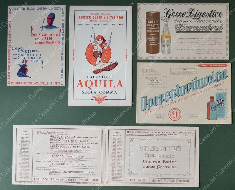 PUBBLICITA'. 5 Carte Assorbenti tutte anni 1930. Buona conservazione. (Rif.F6803)