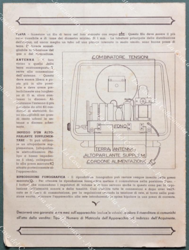 RADIO PHILIPS 666. Istruzioni per l'uso. Anno 1942.