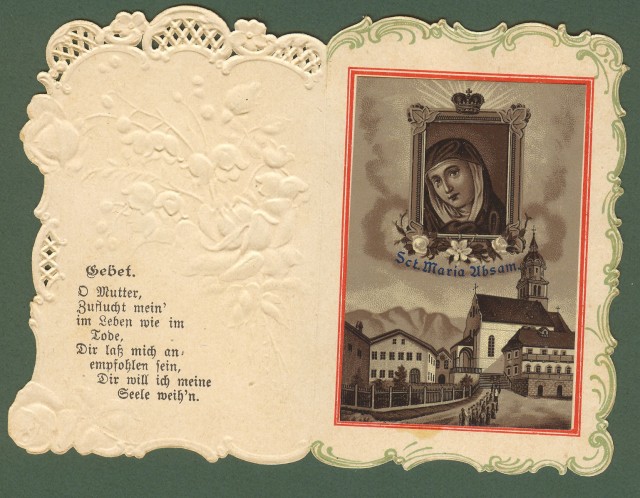SANTINO apribile di produzione tedesca. Fine 1800. Con applicata la fotografia di una stampa. Chiuso mm 60x90, aperto mm 120x90. Ottima conservazione. (Rif.B7770)