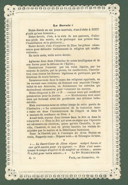 SANTINO di produzione francese fine 1800. Mm 80x122. Minima imperfezione all'angolo inferiore sinistro. (Rif.B7755)