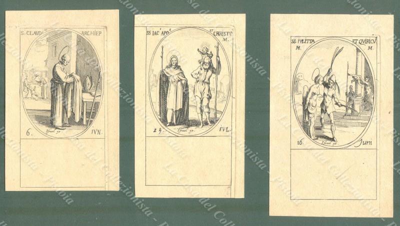 SS.IULITTA M. et QUIRICU M.-SS. IAC.APOS et CHRISTO M.-S.CLAUDIUS ARCHIE P.. 3 incisioni su rame di cm 4,8x9 più margini. Alla base Israel ex. (ma impressioni fine '800). Ottima conservazione. (Rif.E5657)