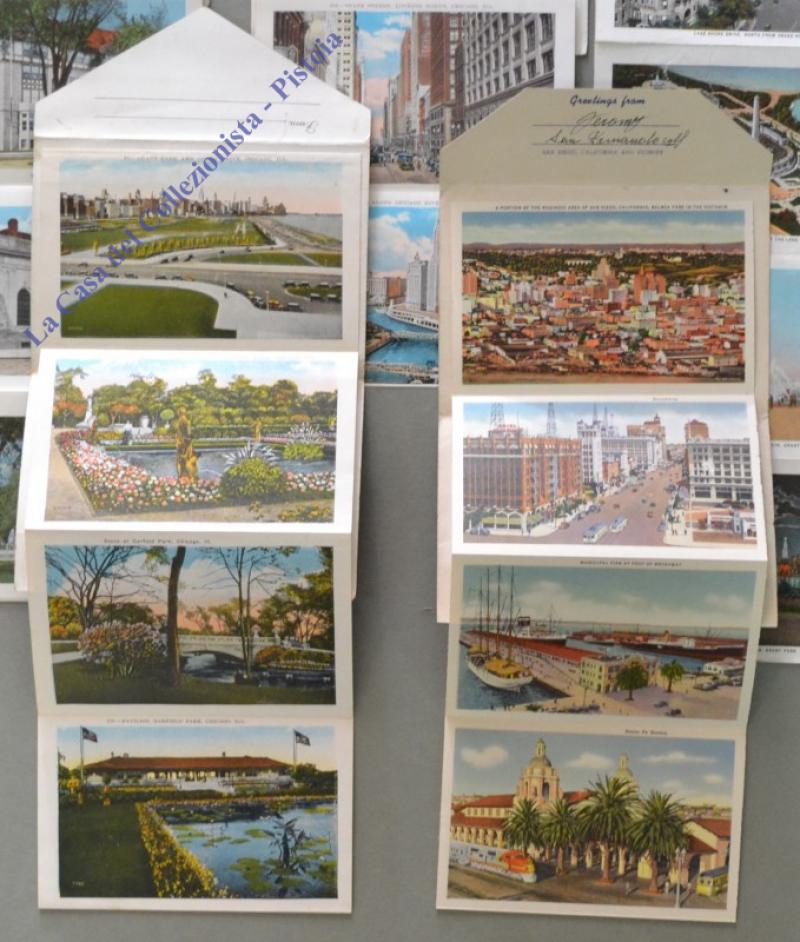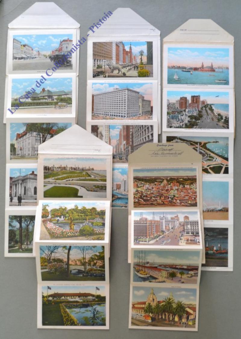 STATI UNITI: CHICAGO, SAN DIEGO APPLETON. 5 buste policrome con unite a fisarmonica, 18/20 immagini...