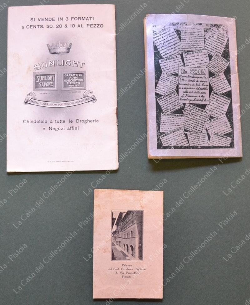 PUBBLICITA'. 3 opuscoli anni '10/'30 del novecento. Piccole imperfezioni. (Rif.F6781)