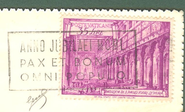 VATICANO. Lire 35 violetto serie Basiliche isolato su cartolina per la Svizzera. Firma Biondi.