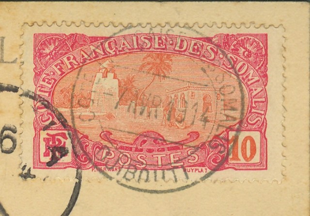 COSTA DEI SOMALI. FRANCIA. Cartolina del 1915 per Pistoia via Aden. COSTA DEI SOMALI. FRANCIA. Cartolina del 1915 per Pistoia via Aden.