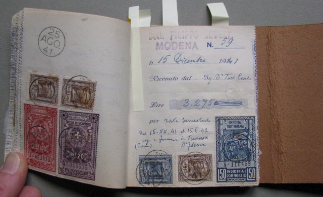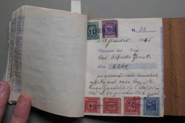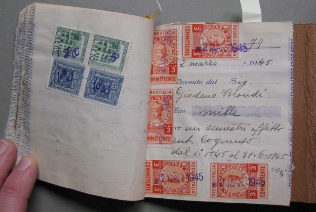 Marche da bollo, Blocco contenente 60 ricevute emesse dal 1940 al 1955. Su ciascuna apposte varie marche da bollo.