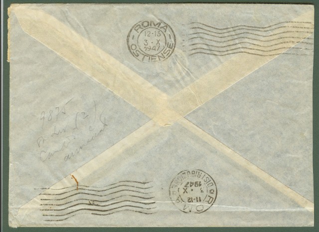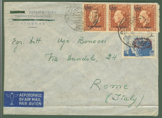 GRECIA. Storia postale. Aerogramma del 30.9.1947 da Atene a Roma. Ottima qualità . (Rif.B2393)