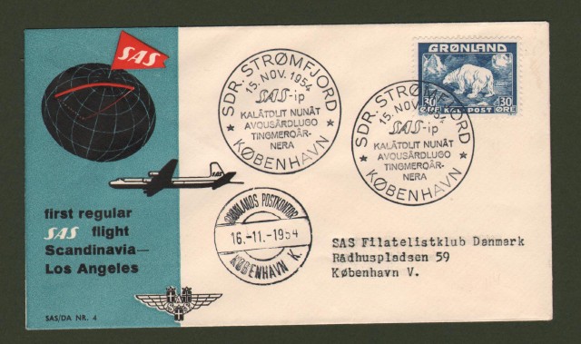 FIRST REGULAR SAS FLIGHT SCANDINAVIA - LOS ANGELES. 15.11.1954. (Rif.C4069)