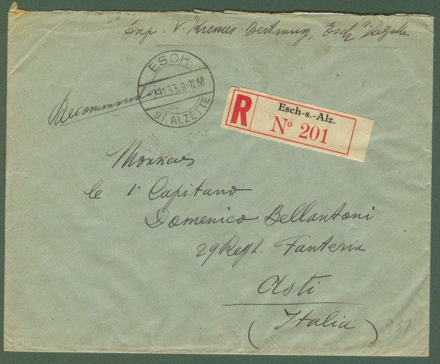 LUSSEMBURGO. Storia postale. Raccomandata per l'Italia del 2.11.1933. Ottima qualità. (Rif.B2398)