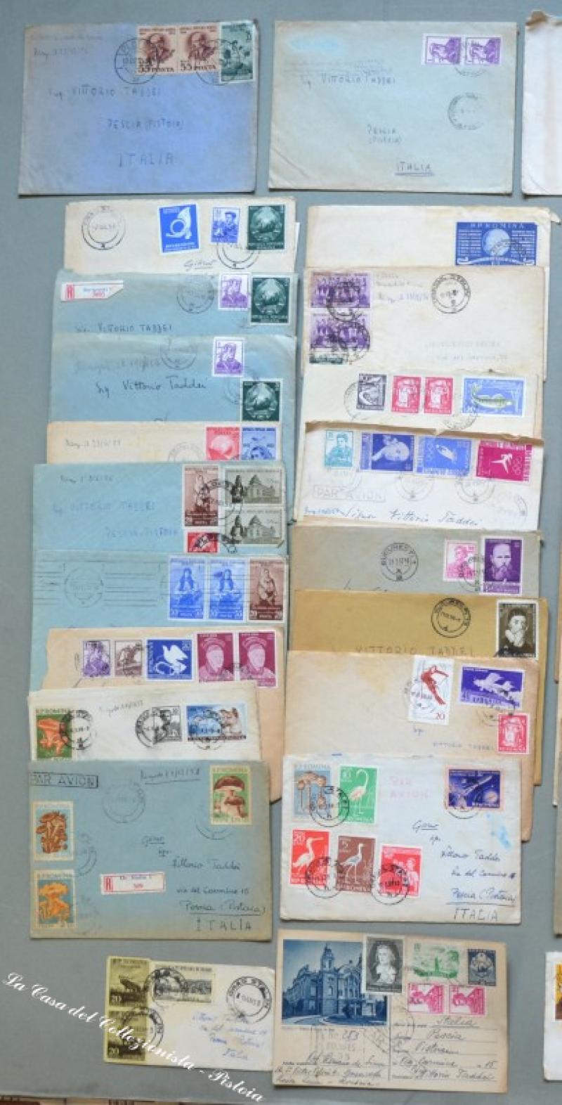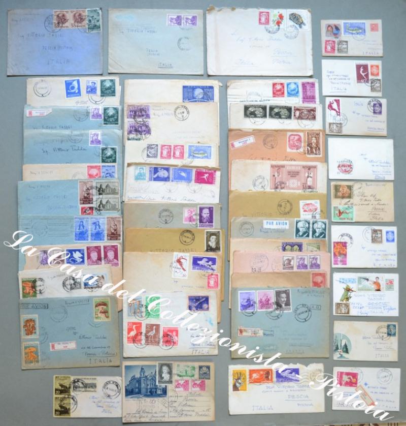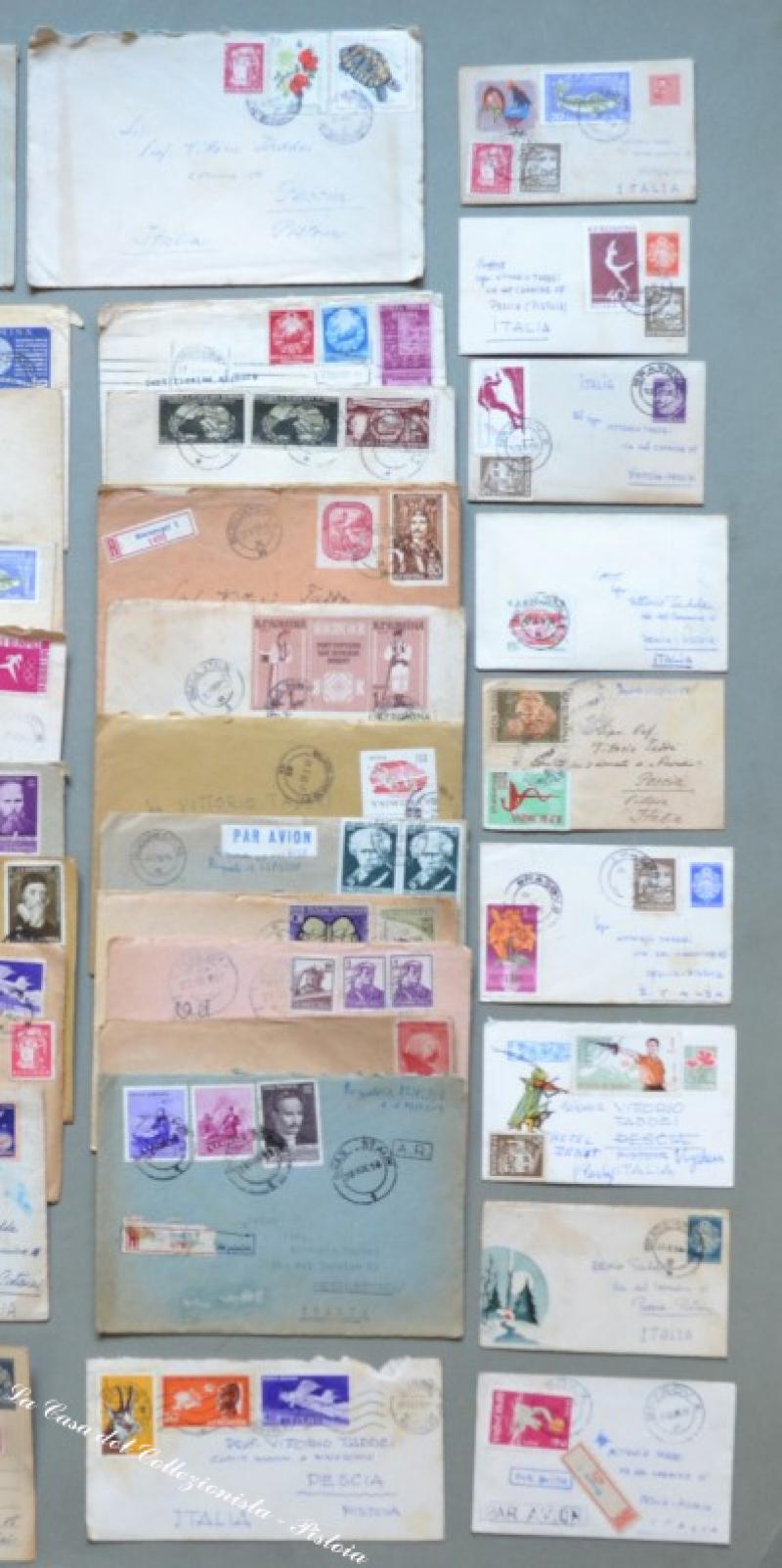ROMANIA. Insieme formato da 42 pezzi: lettere, raccomandate, aereogrammi, biglietti postali spediti da Bucarest a Pescia (Pistoia) tra il 1954 e il 1962. Varietà di affrancature. Qualche piccolo difetto, ma in genere buona qualità. (Rif.D3326)