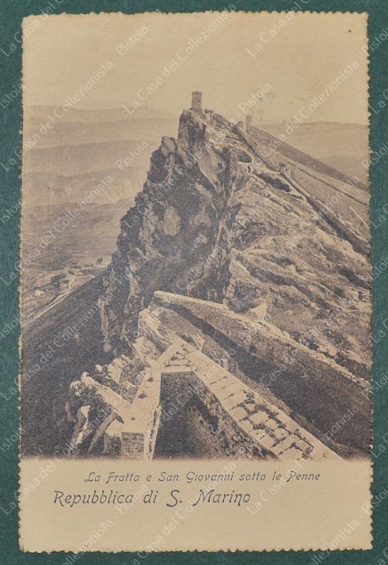SAN MARINO. Coppia cent. 2 violetto + cent. 5 verde + cent. 1 su cartolina del 1910