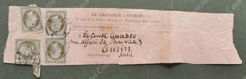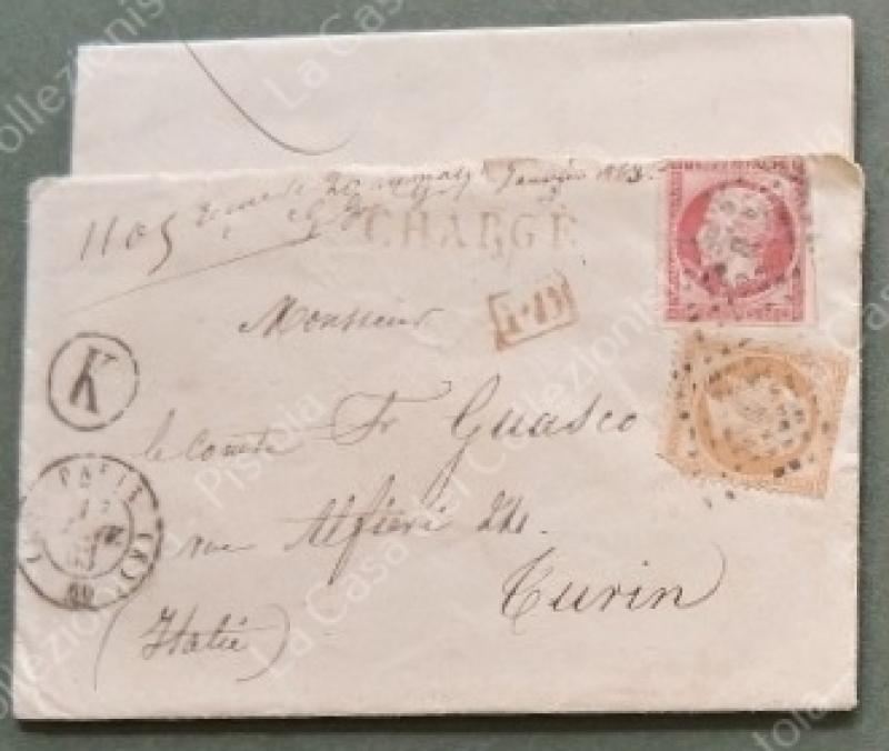 Storia postale estero. FRANCIA. 2 raccomandate per Torino del 1861 e 1863 + fascetta Storia postale estero. FRANCIA. 2 raccomandate per Torino del 1861 e 1863 + fascetta Storia postale estero. FRANCIA. 2 raccomandate per Torino del 1861 e 1863 + fascetta Storia postale estero. FRANCIA. 2 raccomandate per Torino del 1861 e 1863 + fascetta