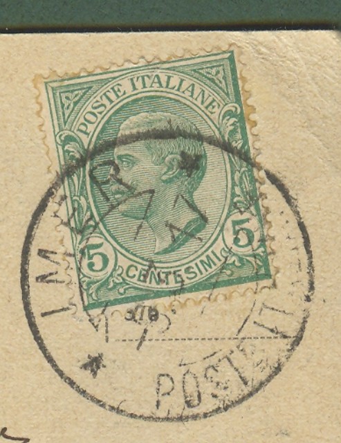 OCCUPAZIONI. IMER - POSTE ITALIANE. Guller nero annullatore di cent. 5 Leoni. Cartolina del 8.3.1917 per Cassano Ionio. Qualità ottima. (Rif.2723)
