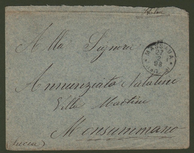 COLONIE. ERITREA. Lettera del 27.2.1898 da Massaua per Monsummano