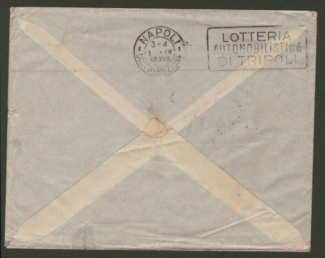 COLONIE ITALIANE. LIBIA. Lettera aerea del 28.3.1940 per Napoli.