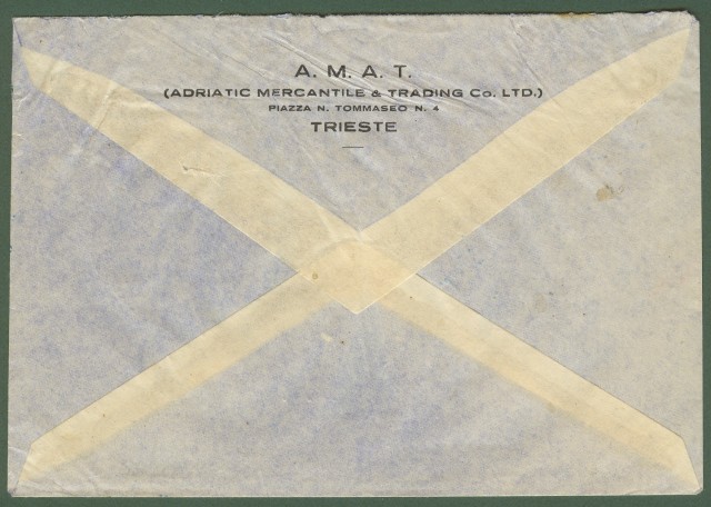 TRIESTE ZONA A. Aerogramma del 10.8.1950 per gli U.S.A. affrancato con lire 10, lire 15, lire 50 Democratica + lire 100 P.A. Campidoglio. Ottima qualità . (Rif.B6414)