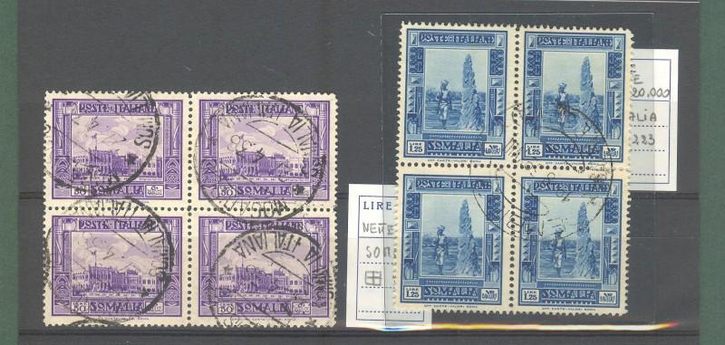 Colonie. SOMALIA. 2 quartine usate, annulli (nn. 175 e 223). Senza difetti. (Rif.D2855)