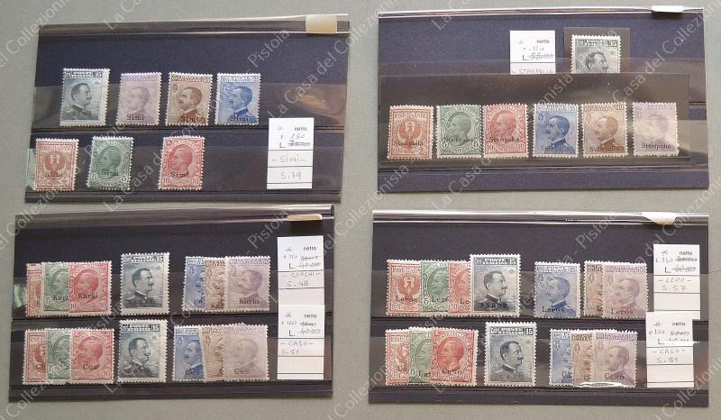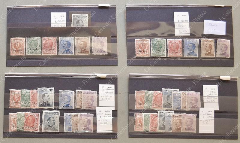 EGEO. Francobolli d'Italia 1901 - 1911 soprastampati. Dodici serie complete, tranne Rodi (manca cent. 15).