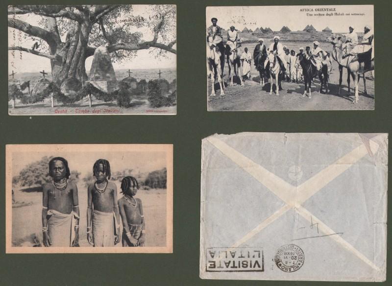 Storia postale. ERITREA. Una lettera e tre cartoline.