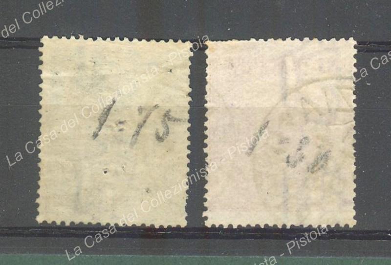 ITALIA REGNO. Segnatasse 1884. Due valori usati da lire 50 verde e lire 100 rosa carminio (Sassone nn.15 e16, serie n.2301). Annulli autentici, buona qualità. (Rif.E4322)