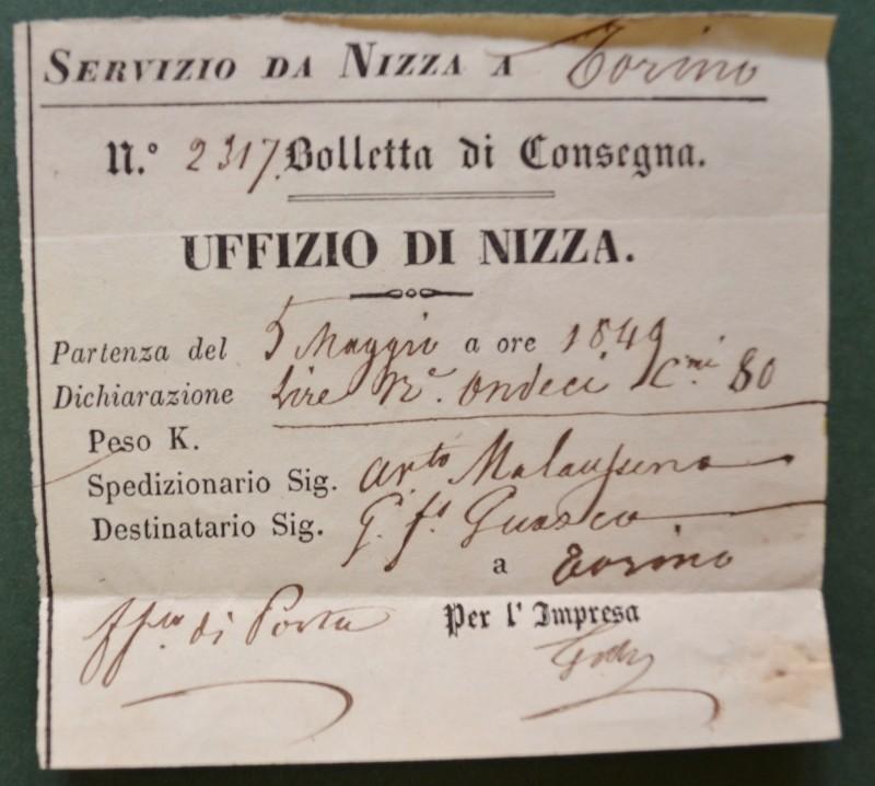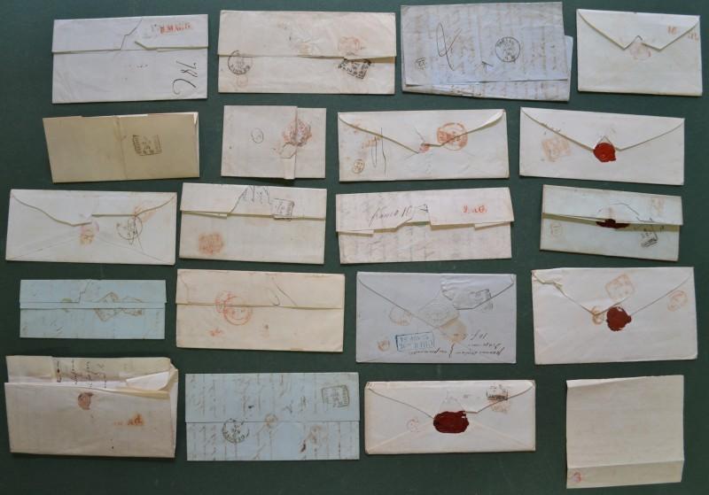 PIEMONTE. 19 lettere e una bolletta (anni 1849 - 1858) da Nizza, Novi, Roma, Pinerolo, Stradella, Locche (Francia), Lugano e Zizzers (Svizzera). Complete del testo, ottima conservazione. (Rif.F5233)