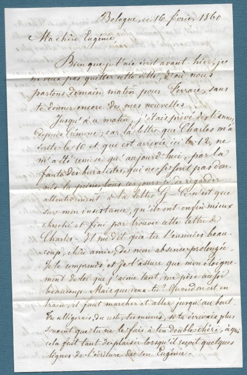 STATI SARDI. GOVERNO PROVVISORIO DELLE ROMAGNE. IV emissione, 10 centesimi bruno grigio olivastro, I tavola, tiratura 1860 ( Sassone 14B), coppia orizzontale annullata mediante due impronte del timbro "muto" a losanga pontificio di Bologna (datario doppio cerchio a lato) su busta indirizzata a Torino del 17 febbraio 1860. Conservata la corrispondenza. Ottima qualità, certificato Bottacchi. (Rif.F7763)