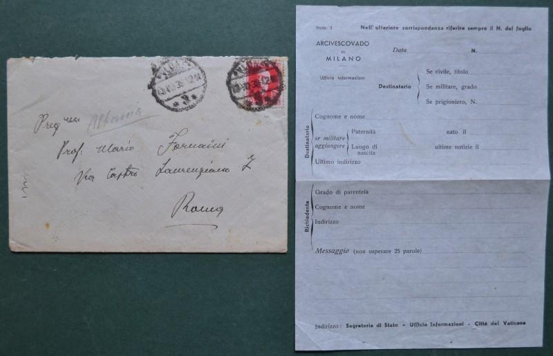 ALBANIA. 15 q. rosso su lettera del 1939 da Valona a Roma. Contenente modulo in bianco. (Rif.F7009)