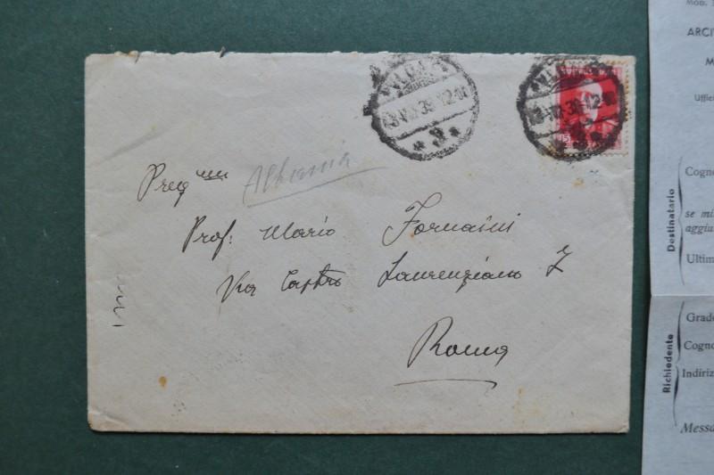 ALBANIA. 15 q. rosso su lettera del 1939 da Valona a Roma. ALBANIA. 15 q. rosso su lettera del 1939 da Valona a Roma. ALBANIA. 15 q. rosso su lettera del 1939 da Valona a Roma.