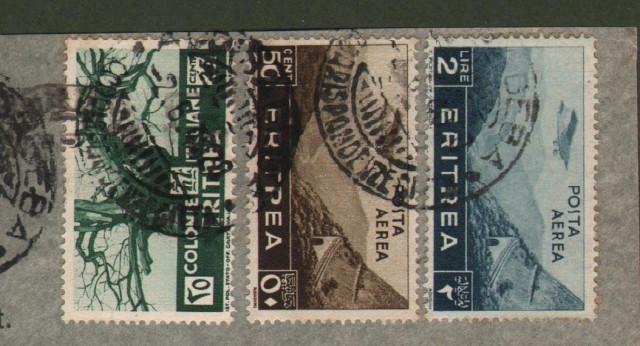 Colonie Italiane. ERITREA. Aerogramma del 2.6.1940 da Addis Abeba per Milano. Affrancato con cent. 25 verde + cent. 50 P.A. bruno + lire 2 P.A. azzurro nerastro (Sassone 207 + P.A. 18 + P.A. 23). Francobolli senza difetti, ottima qualità . (Rif.C8120)