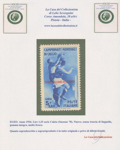 EGEO. Anno 1934. Lire 1,25 serie Calcio (Sassone 78).