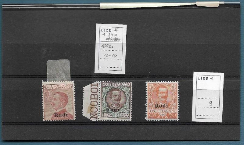 EGEO. RODI. Sassone 13/14. Unica linguella, freschi + Sassone 9. (Rif.F3481)