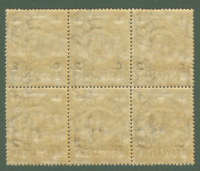 FRANCOBOLLI COLONIE. ERITREA. Anno 1924. Cent.2 su 1 b. bruno (Sassone n.80). Blocco di sei, gomma integra, molto fresco. (Rif.C1807)
